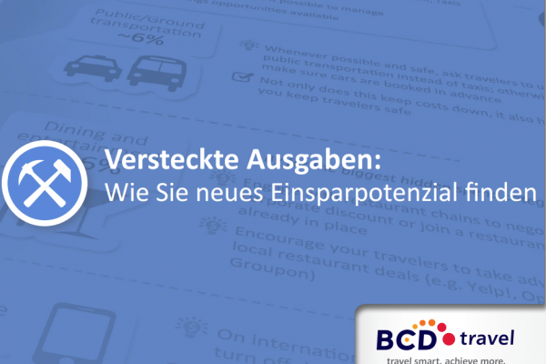Viele Unternehmen wachen sorgsam über die Kosten für Flüge, Hotels, Mietwagen und Zugfahrten. Doch diese Kategorien machen nur Dreiviertel der gesamten Reiseausgaben aus. Ganze 25 Prozent des Reisebudgets werden für versteckte Reisenebenkosten ausgegeben – und die werden oftmals nicht gesteuert oder erfasst. Wie Sie diese Einsparpotenziale erkennen und nutzen können, erfahren Sie hier.